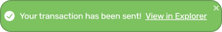 - When complete, a success message with the option to view the tansaction in a block explorer