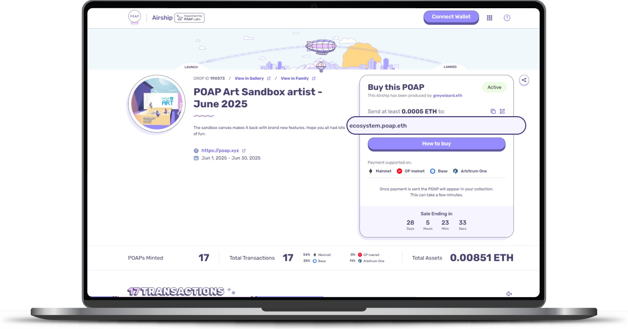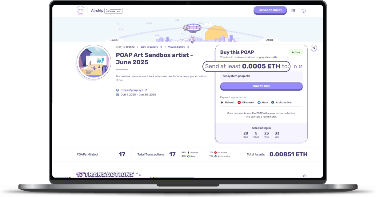Once your transaction is confirmed, the POAP will be automatically airdropped to the address that sent the funds.