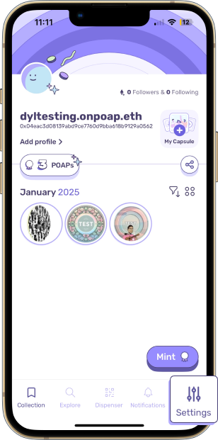 The POAP Home app allows you to manage push notifications directly from the app. These notifications help you stay informed about activity related to Moments, drops, collectors you follow, and location based experiences.
